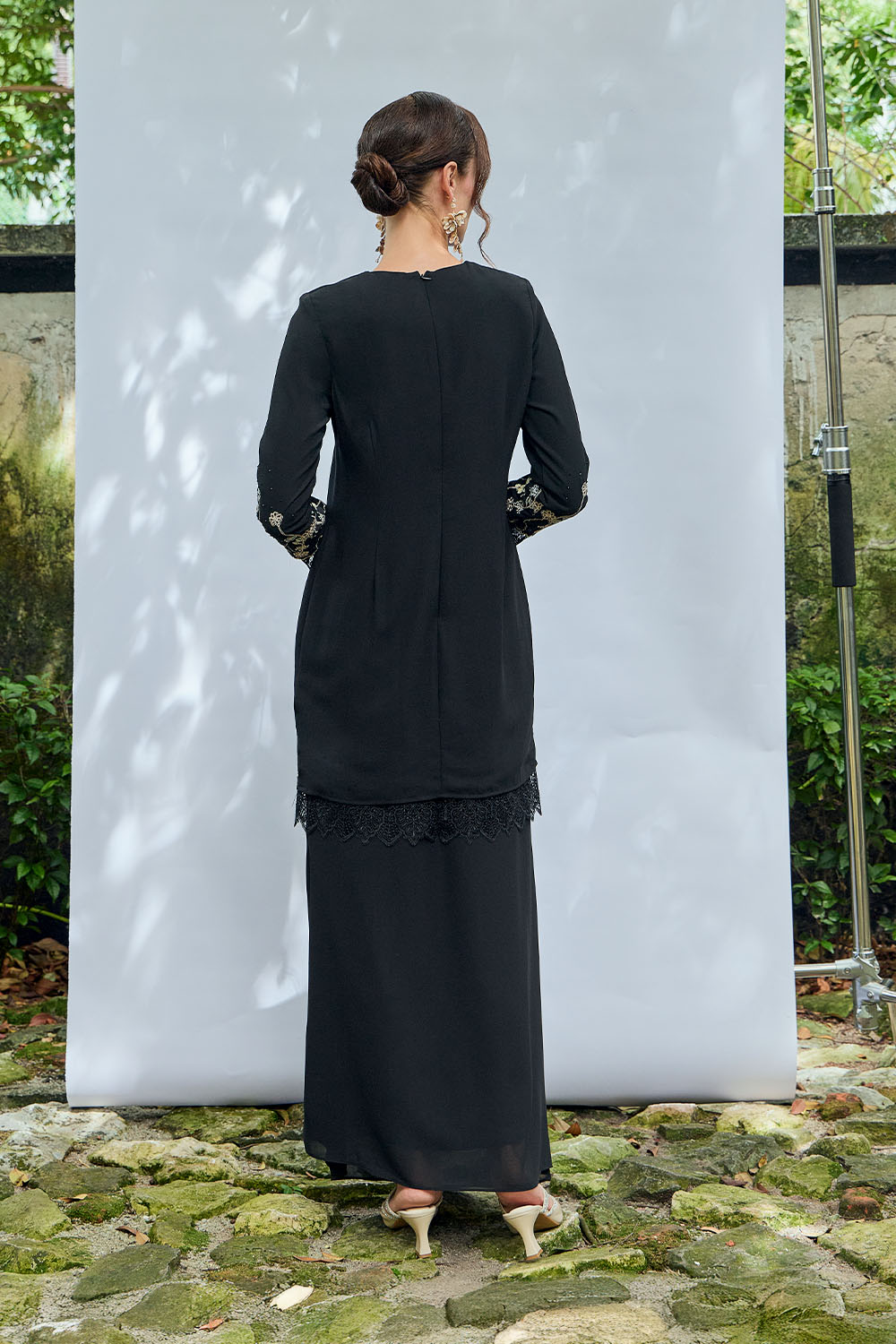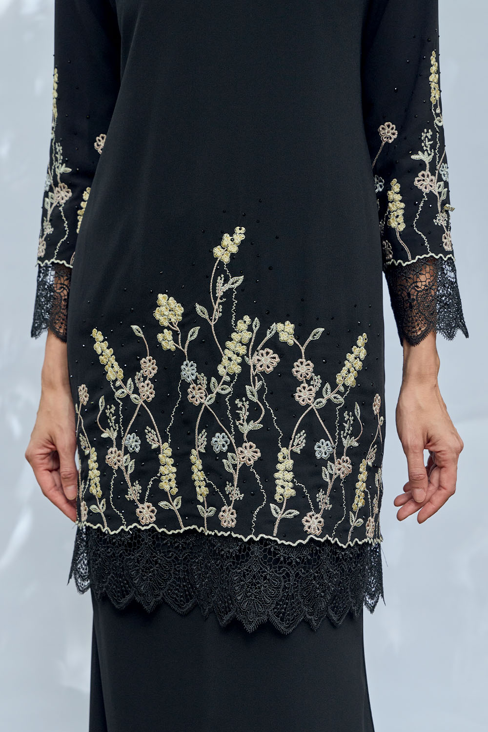 • Border lace accessories on sleeves and hem for refined detailing